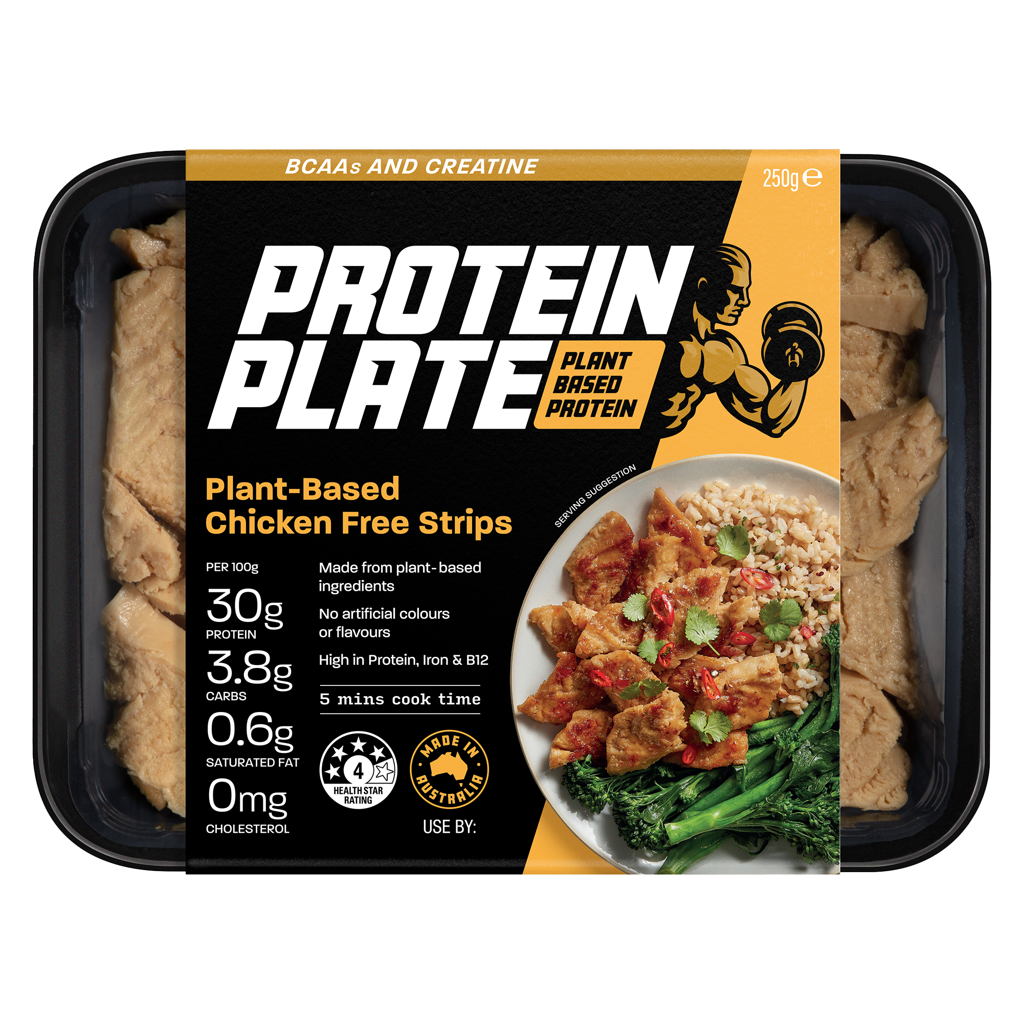 Enhance your routine with Protein Plate Chicken-Free Strips. Whether you enjoy them in a wrap, with fried rice, or as a quick grilled snack, these strips are a versatile addition to your meals. Formulated with high-quality ingredients. Healthy, tasty and ready to cook your way.
